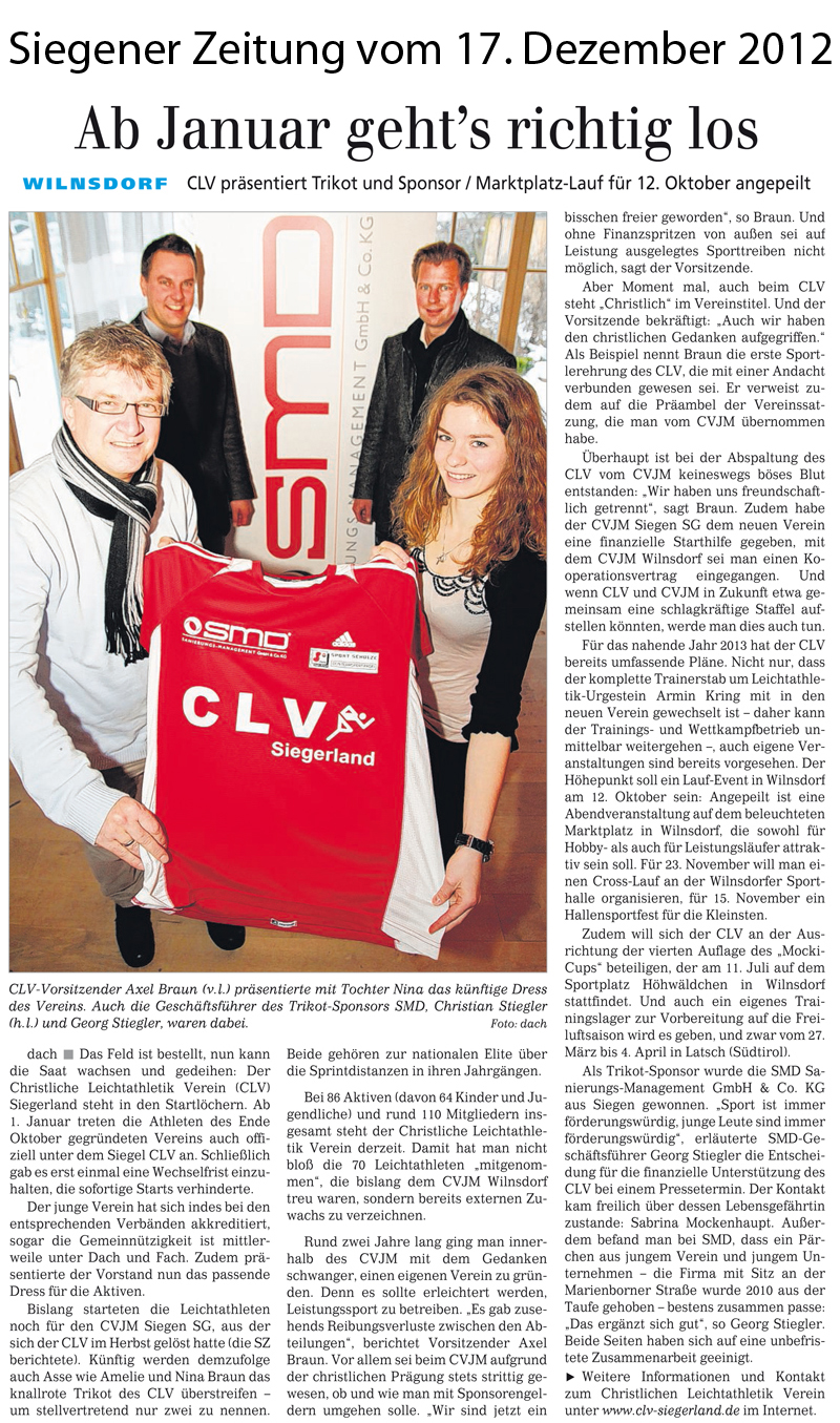 SMD-Sanierungs-Management neuer CLV Trikot Sponsor