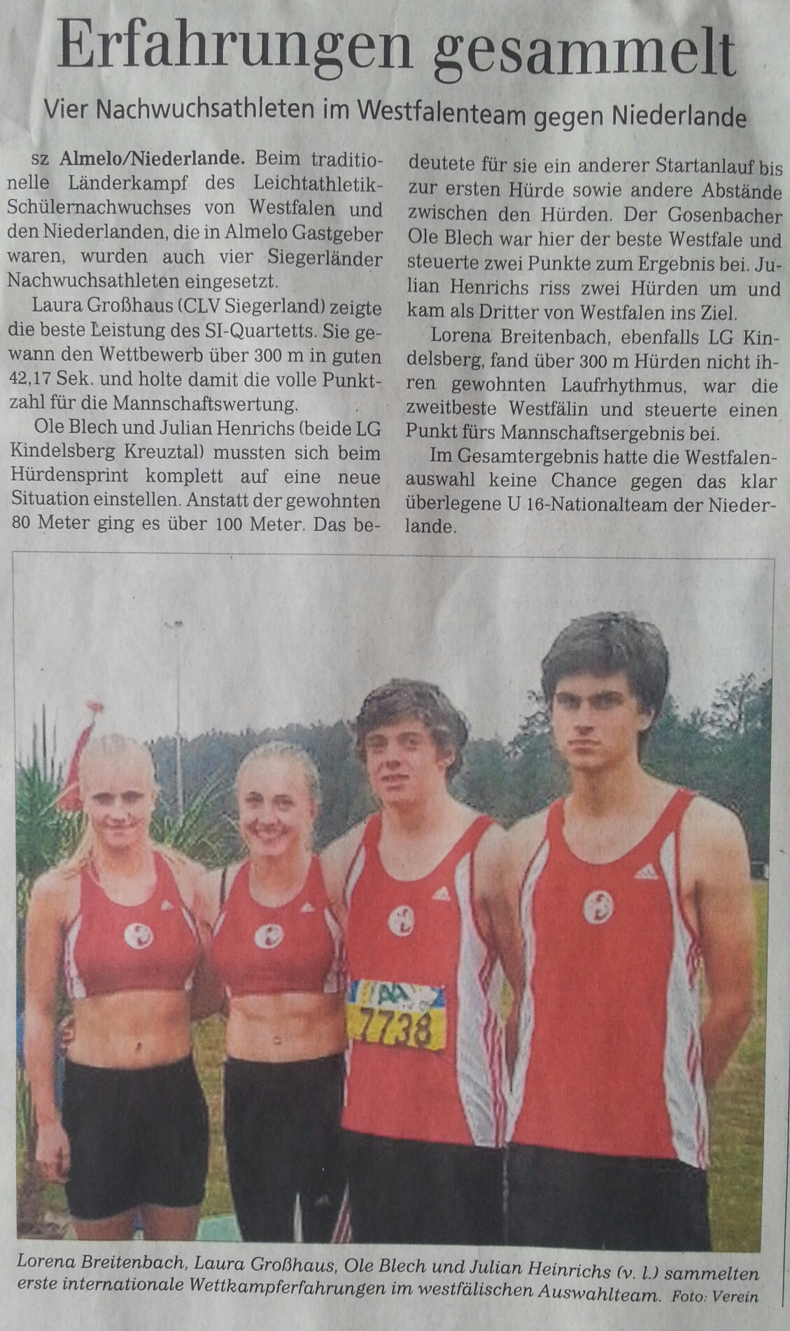 Bericht aus der Siegener Zeitung vom 9. September